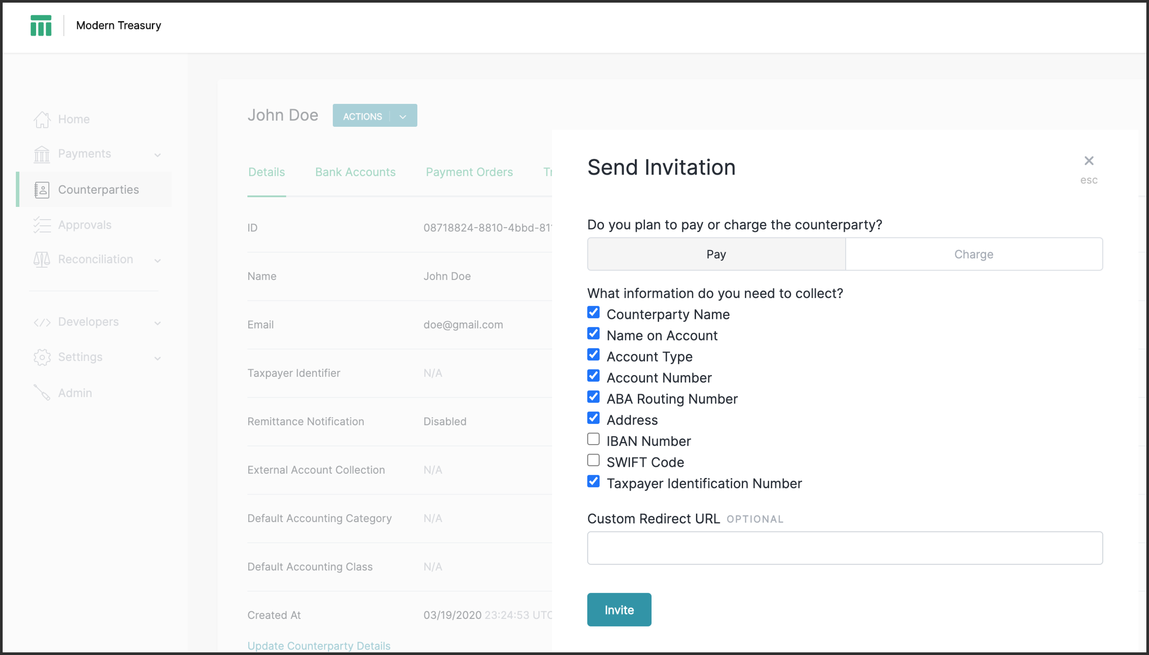 --url https://app.moderntreasury.com/api/counterparties \