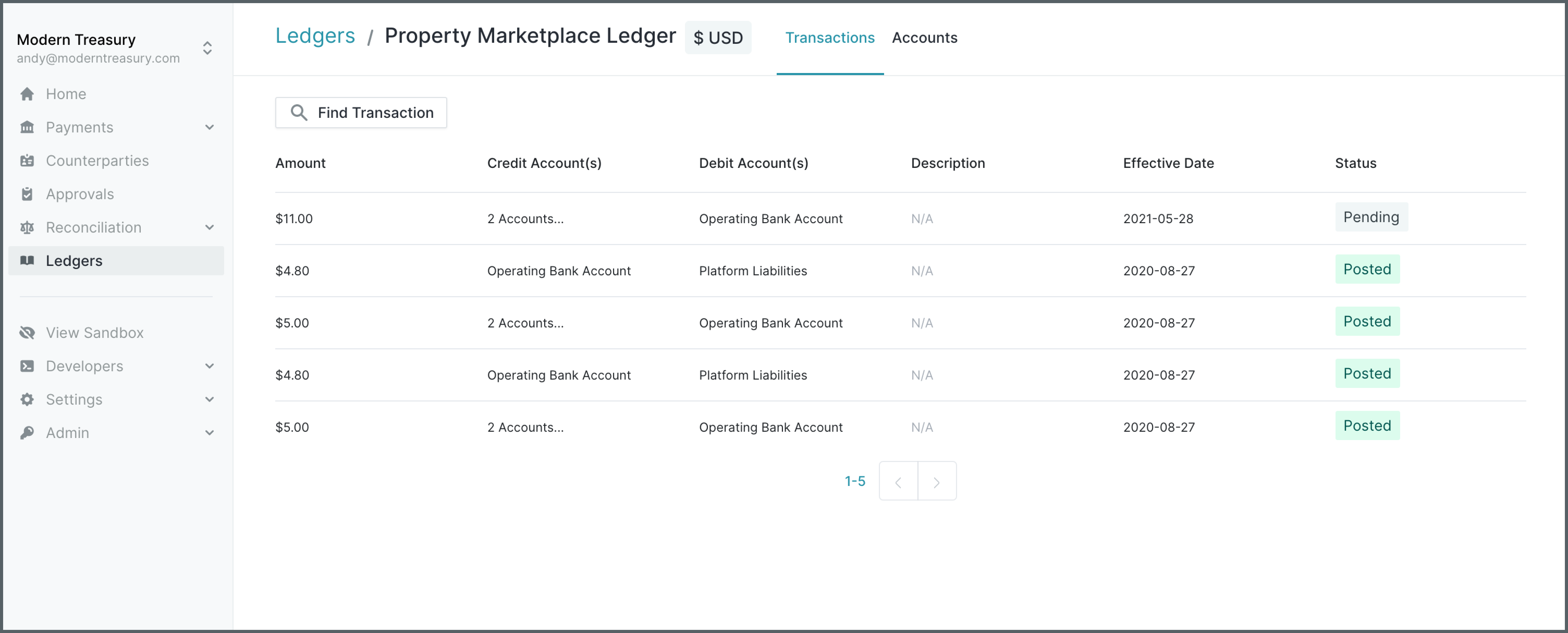 - Ledgers can be used independently from the core payments functionality of Modern Treasury. There are also powerful links for tying payments activity in Modern Treasury to information on your ledger.