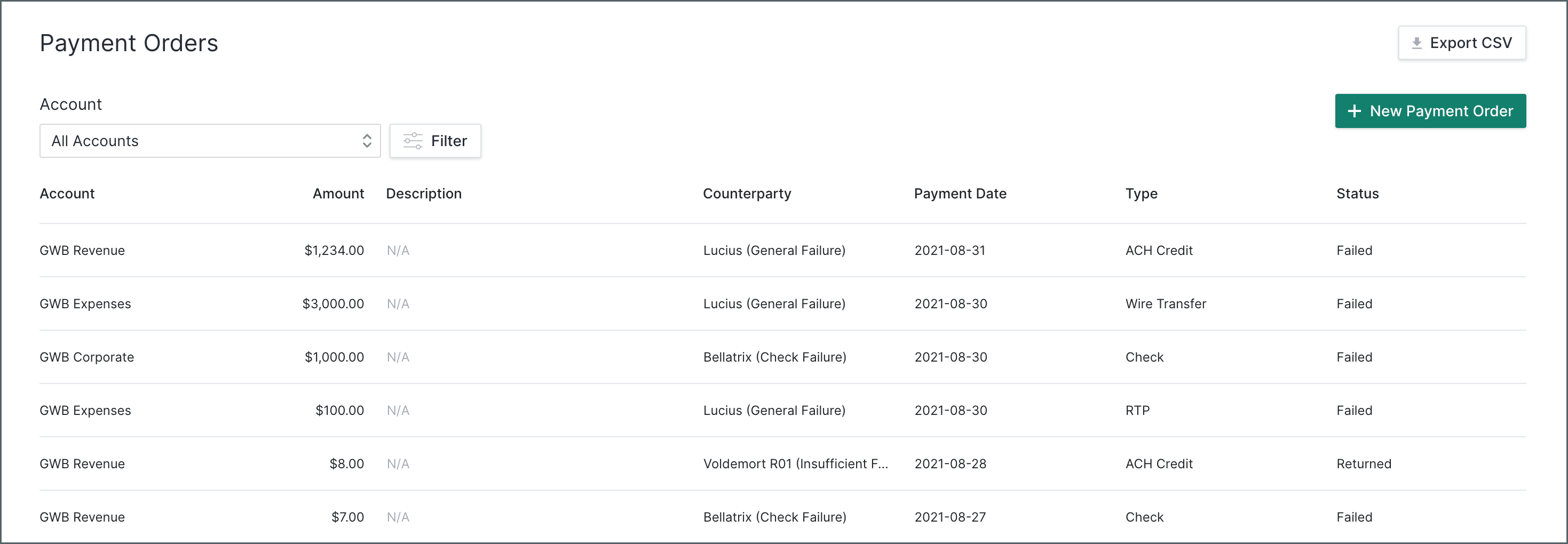 Customers can now simulate failed ACH, wire, RTP, and check payments in their sandbox. As with all simulated sandbox behavior, this flow can only be done through our Gringott’s test bank.