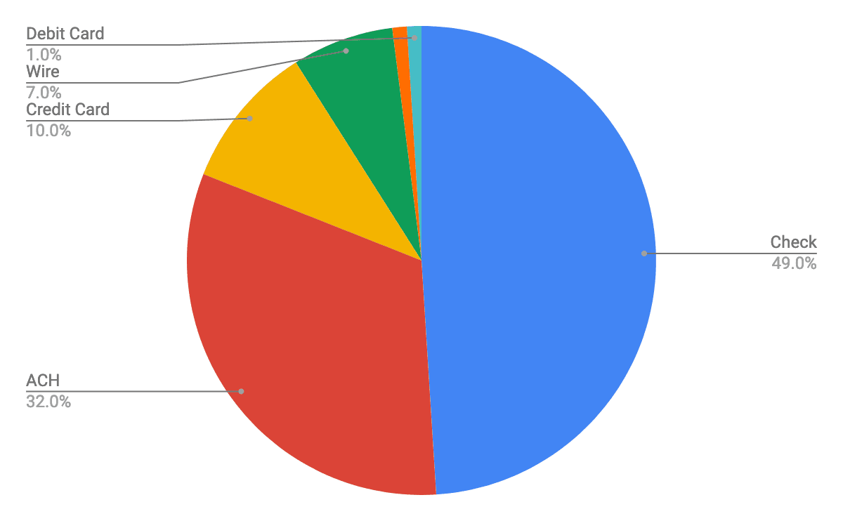 In a 2017 survey of Fortune 1500 companies, here’s how B2B payments broke down on a per-transaction basis: