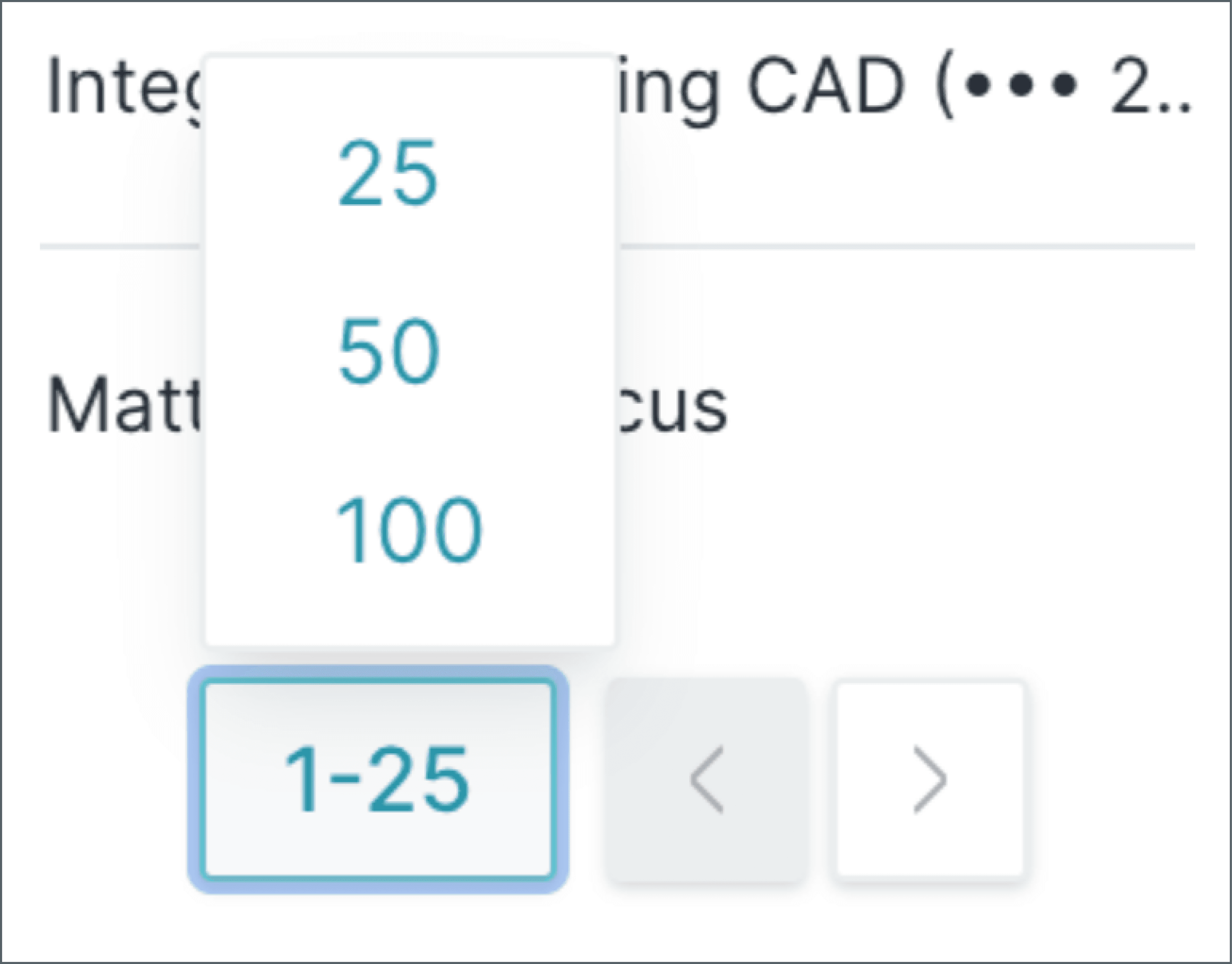 You can select the number of results to show per-page by clicking the record count in the pagination widget. You can view larger lists of resources in the dashboard.