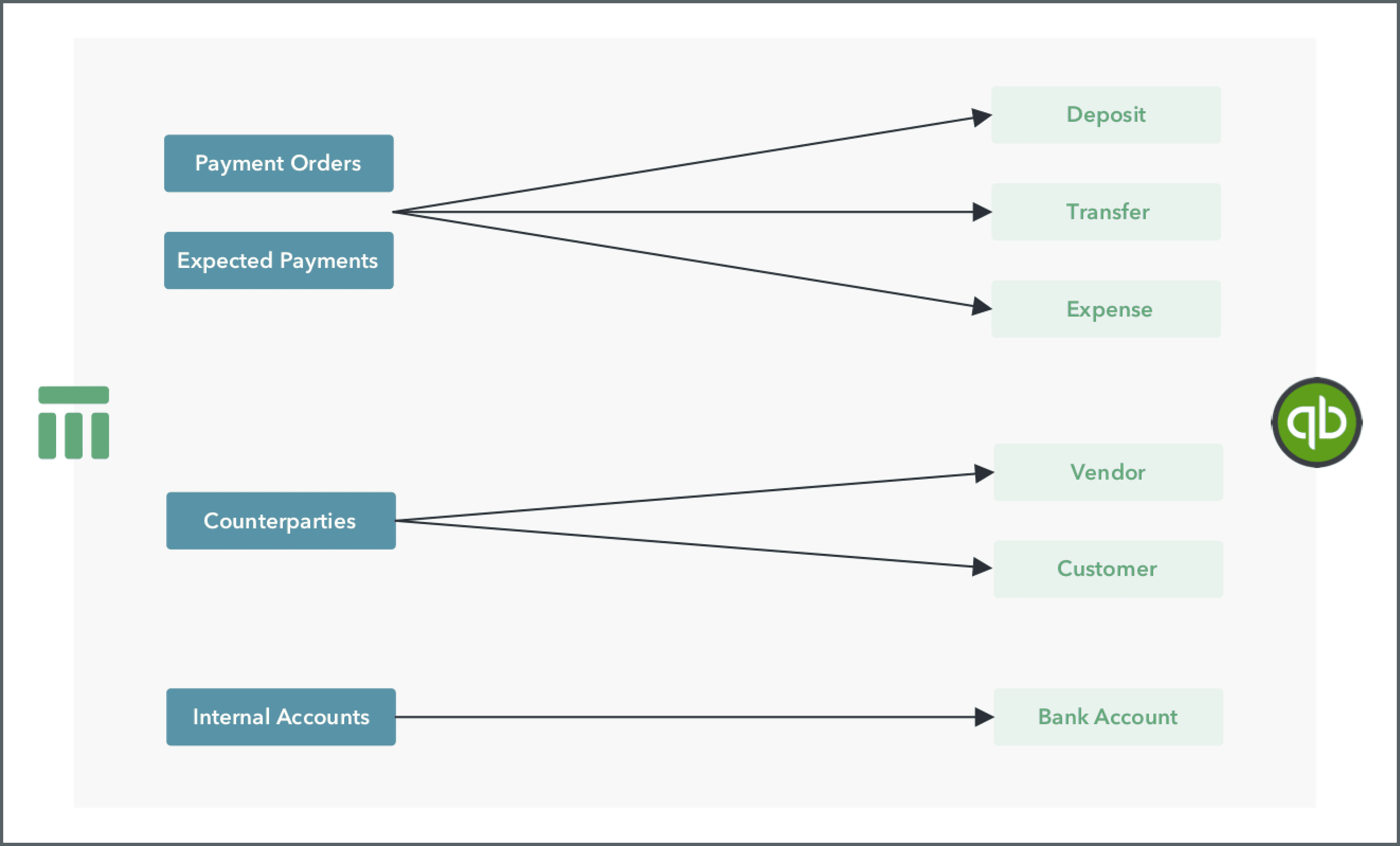 This requires us to maintain records of the data from QuickBooks, such as the chart of accounts, classes, customers, and vendors. This data is associated with entities in Modern Treasury: