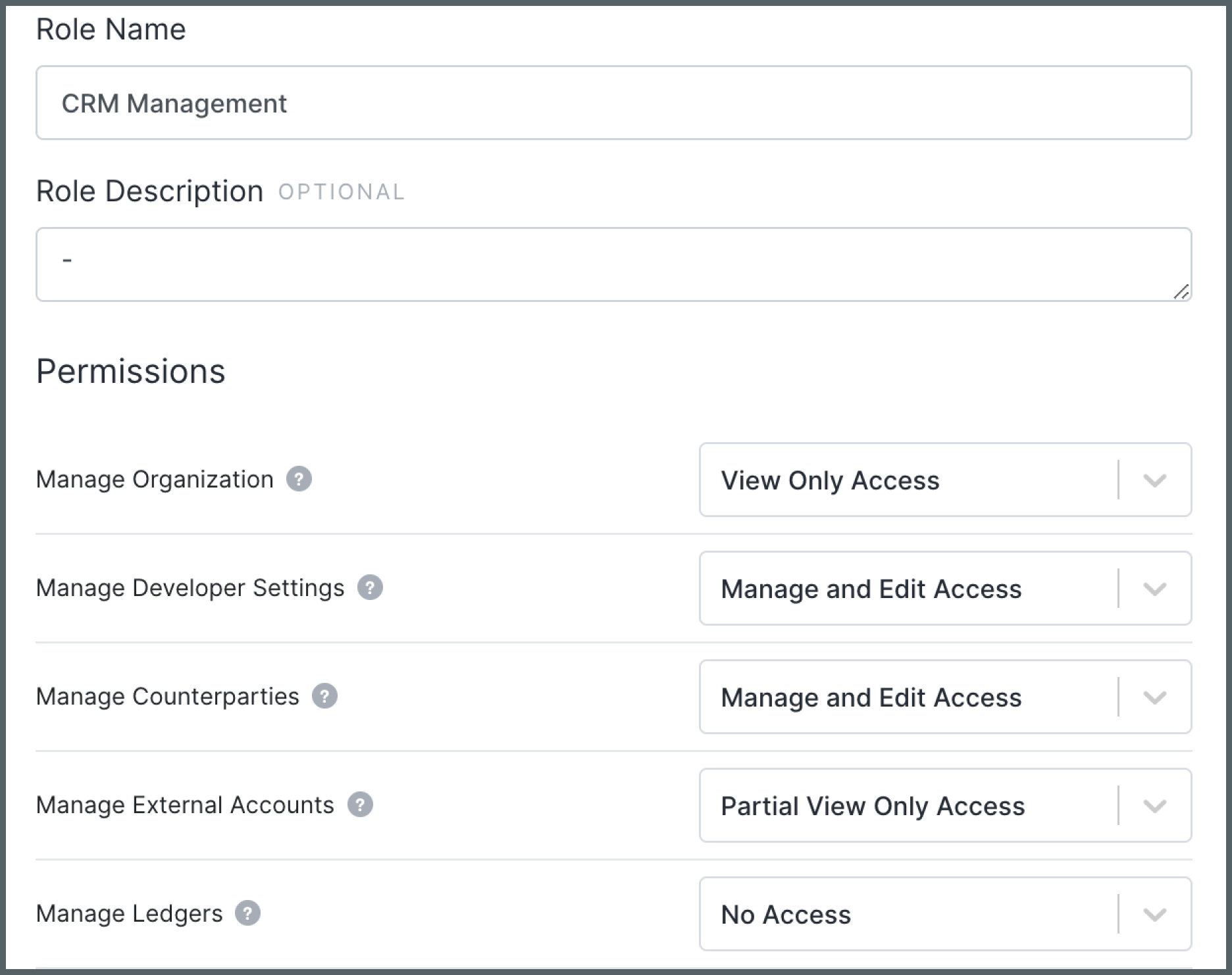We rolled out a more granular permission structure for counterparties and external accounts. Previously, these permissions were grouped together, which made it difficult for businesses whose structure had separated the responsibilities for managing the CRM (counterparty) and managing the finances (external accounts). With separated permission levels, businesses can customize access—for example, granting viewing ability to the counterparty without access to bank account information—which can help assuage some data security concerns.