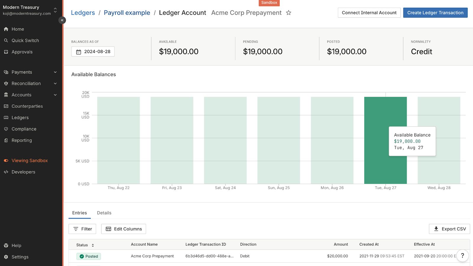 Users can now view additional information on the Ledger Account page. They can now see balances by date and ledger entries at a glance.