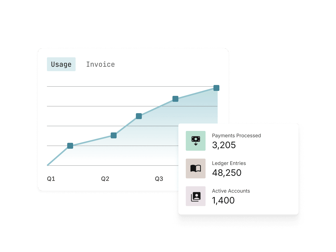 Pay as you grow your platform on top of Modern Treasury. Pricing scales with actual usage, not long-term volume commitments.